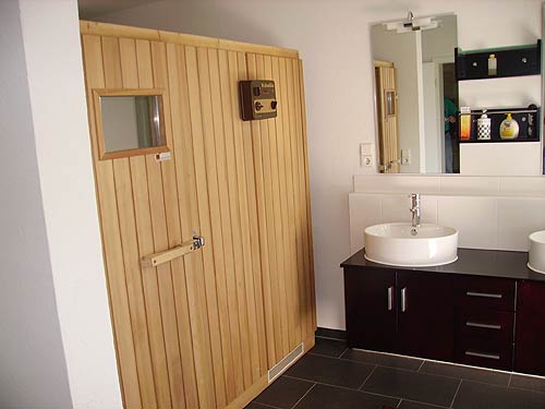 Komplett neue Versorgungsleitungen, Heizkörpererneuerung, Fußbodenheizung im gesamten Bad, begehbare Dusche, große Badewanne für zwei Personen, im Bad liegendes separates WC, Saunaraum.